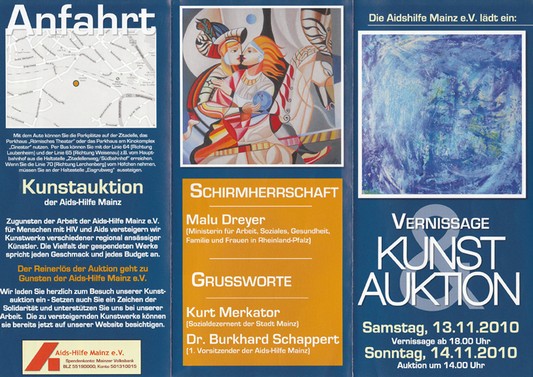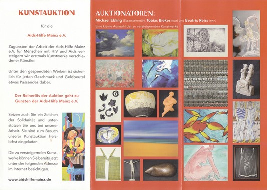 SPENDE FÜR DIE AIDSHILFE MAINZ E.V. (2008)Zugunsten der Arbeit der Aidshilfe Mainz e.V. für Menschen mit HIV und Aids wurden Kunstwerke verschiedener regional ansässiger Künstler versteigert.